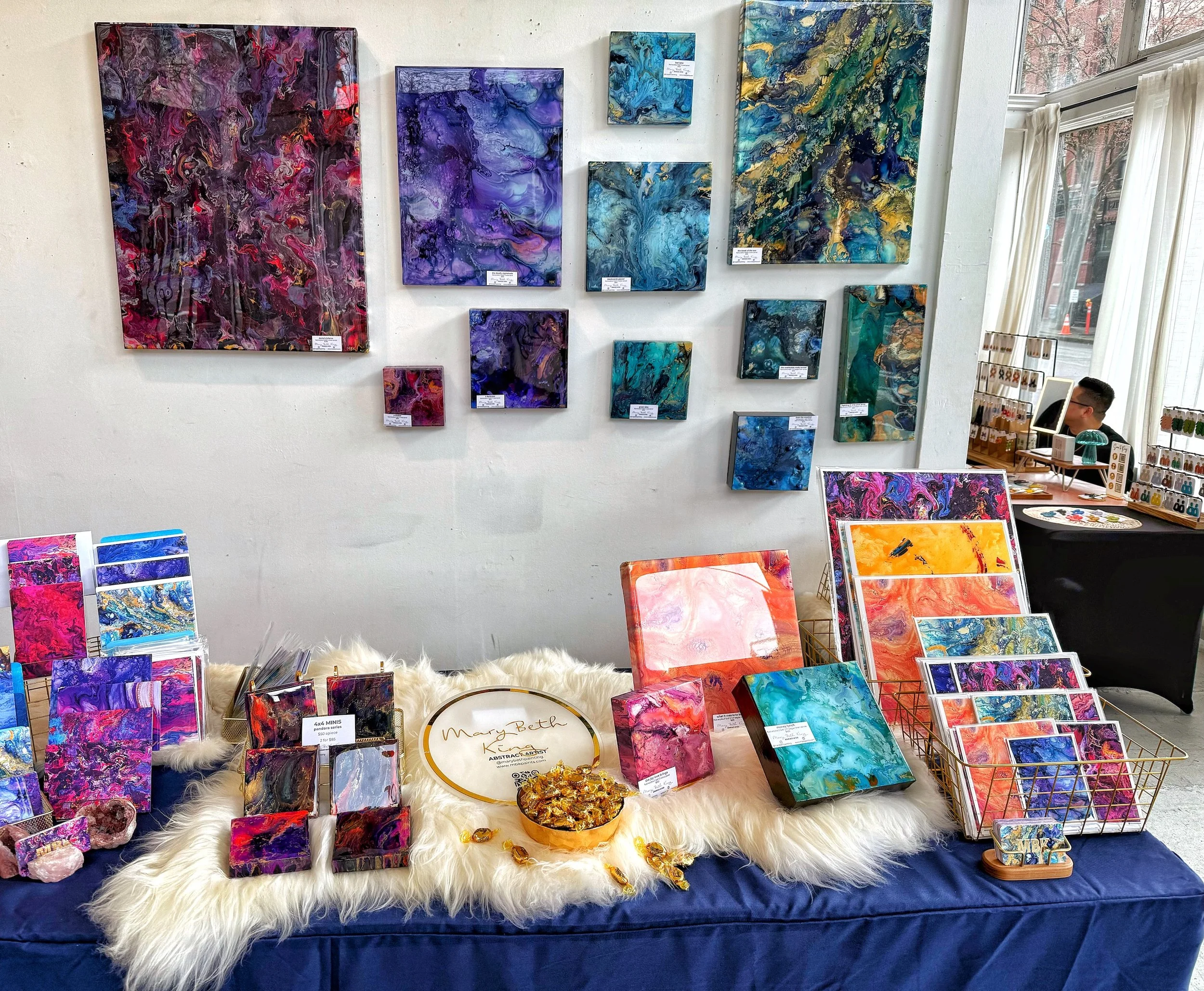 mary beth left her 16-year digital marketing career in late 2024 to focus on her art full-time. she is at once thrilled and terrified at what lies ahead - but she’s never been as happy or joyful as she is now, pursuing her true passion. and now, her work has been purchased and commissioned by private collectors, displayed in businesses, and sold in galleries around the US and Canada, including pickett fence gallery, the lucky rabbet, phase/55 gallery, the ballard collective, 210 SEATTLE, portage bay cafe, the pancakes & booze art fair, whistler arts’ 2025 anonymous art show, and more. she’s also had booths at juried art festivals around the pacific northwest, including bellevue arts fair, alki art fair, and redmond art festival.