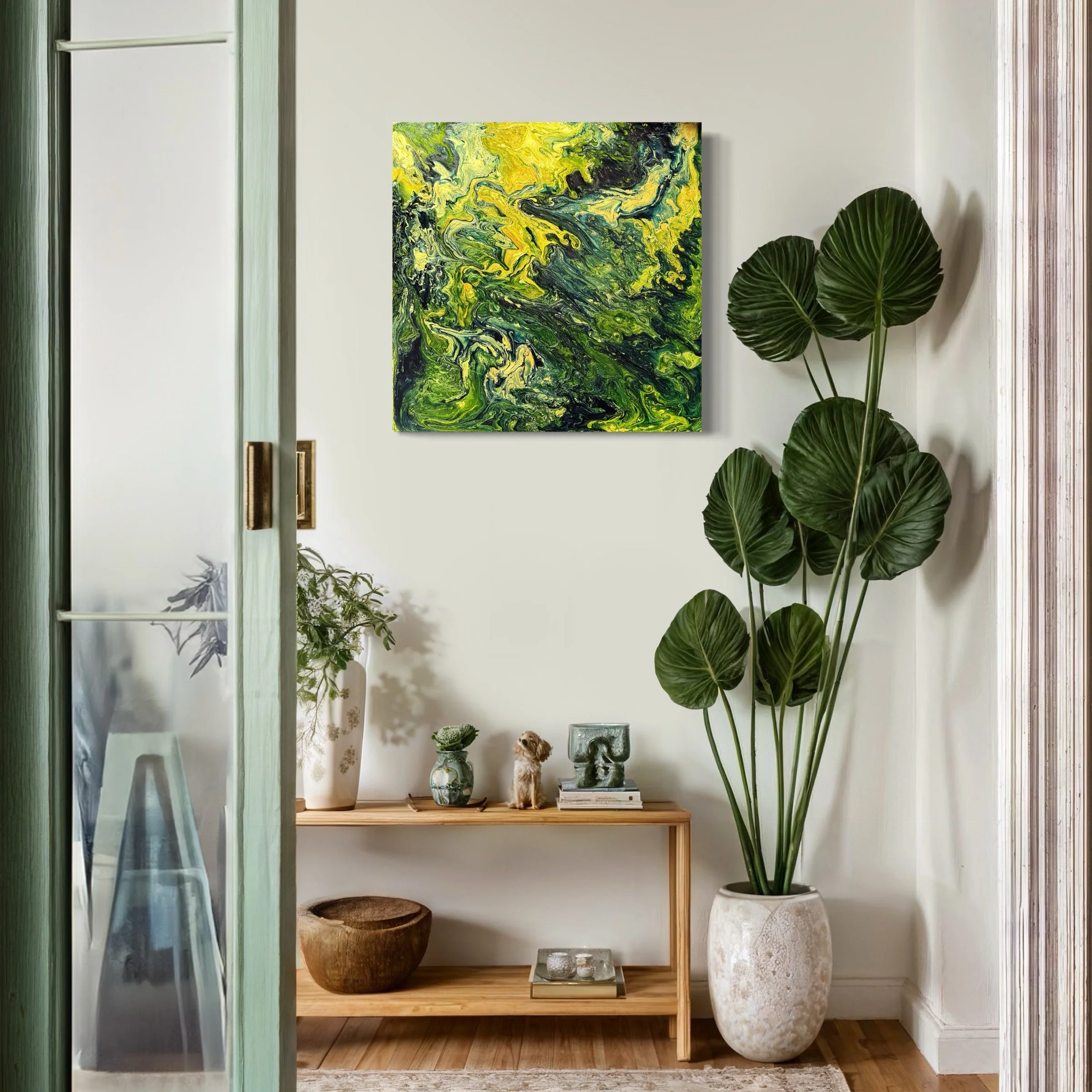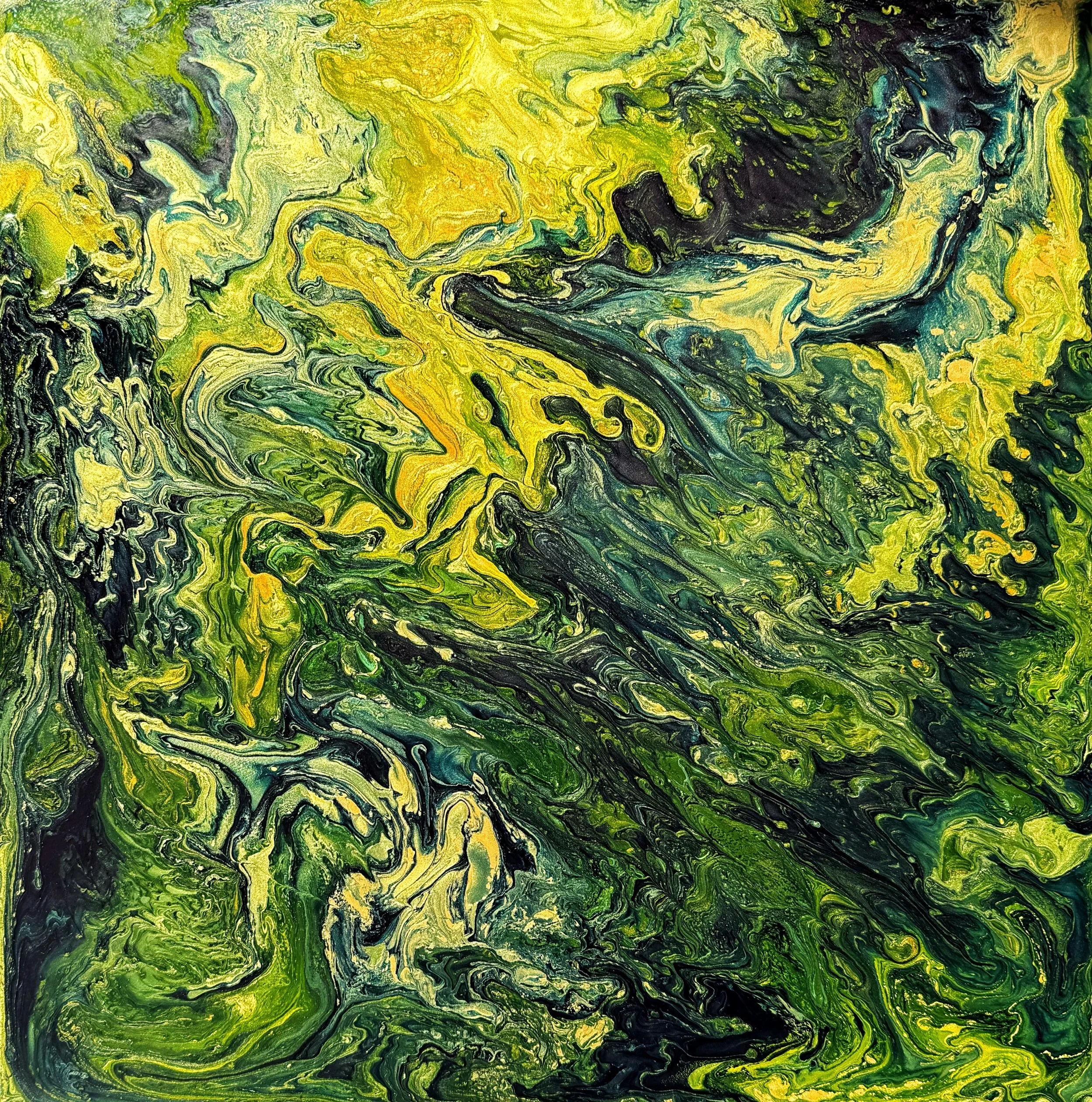 fluid acrylic on 7/8” deep wood panel topped with high gloss epoxy resin