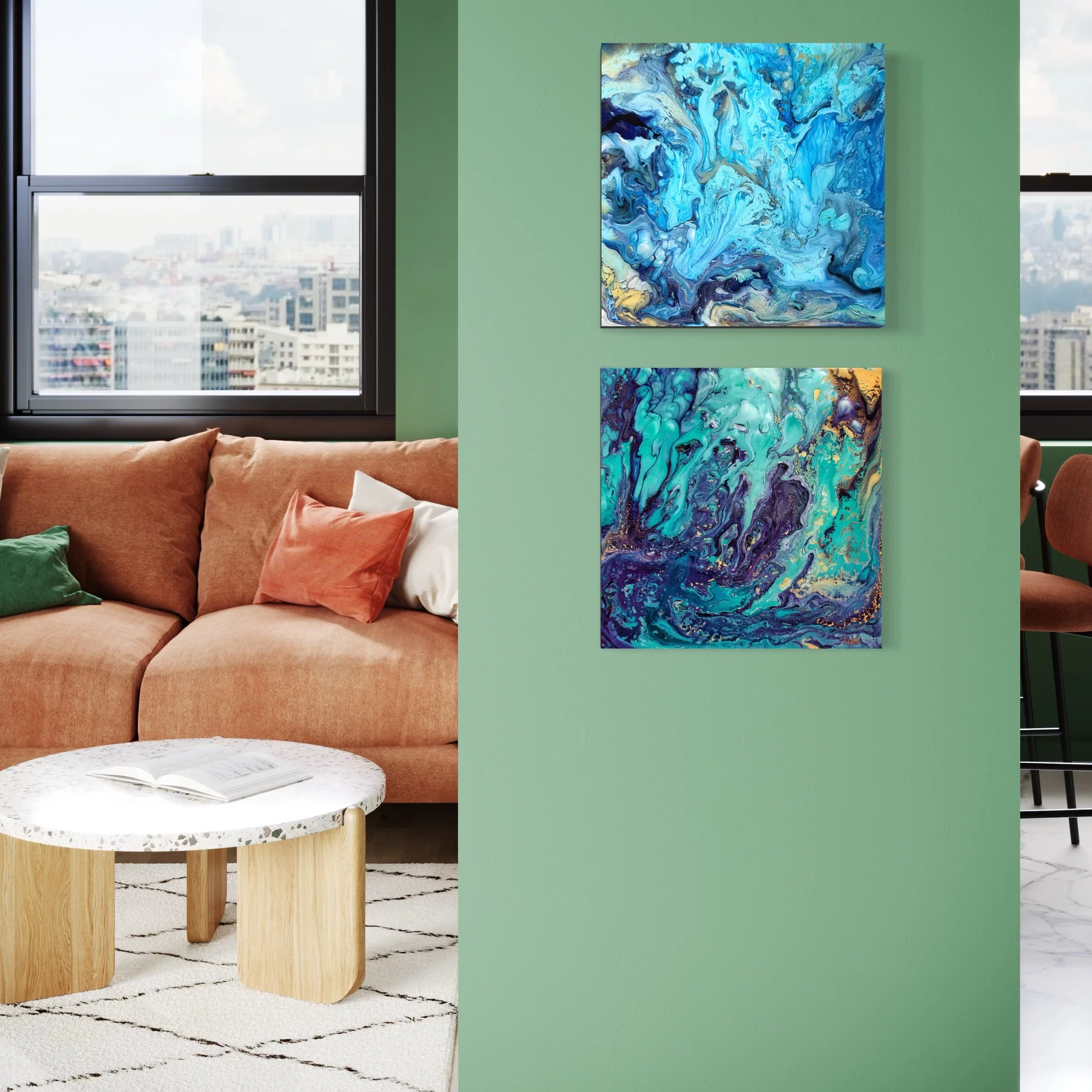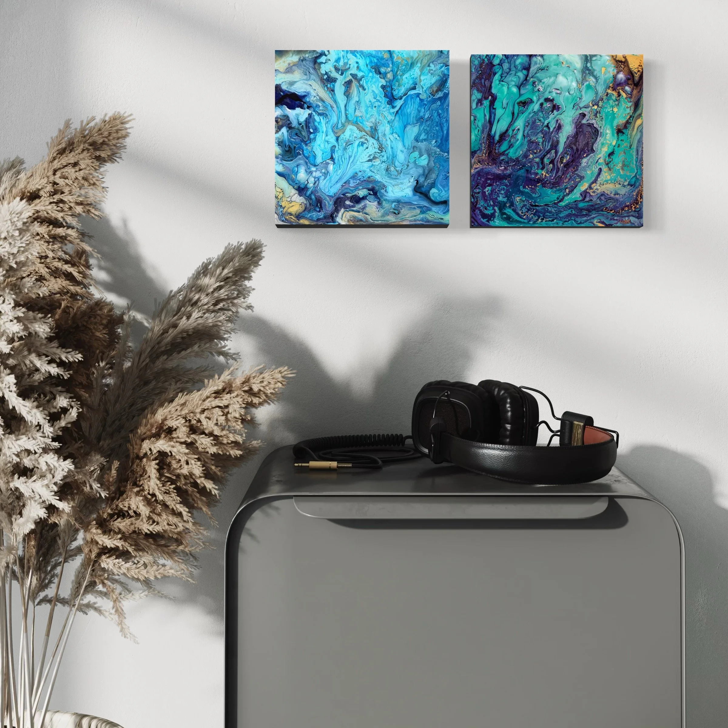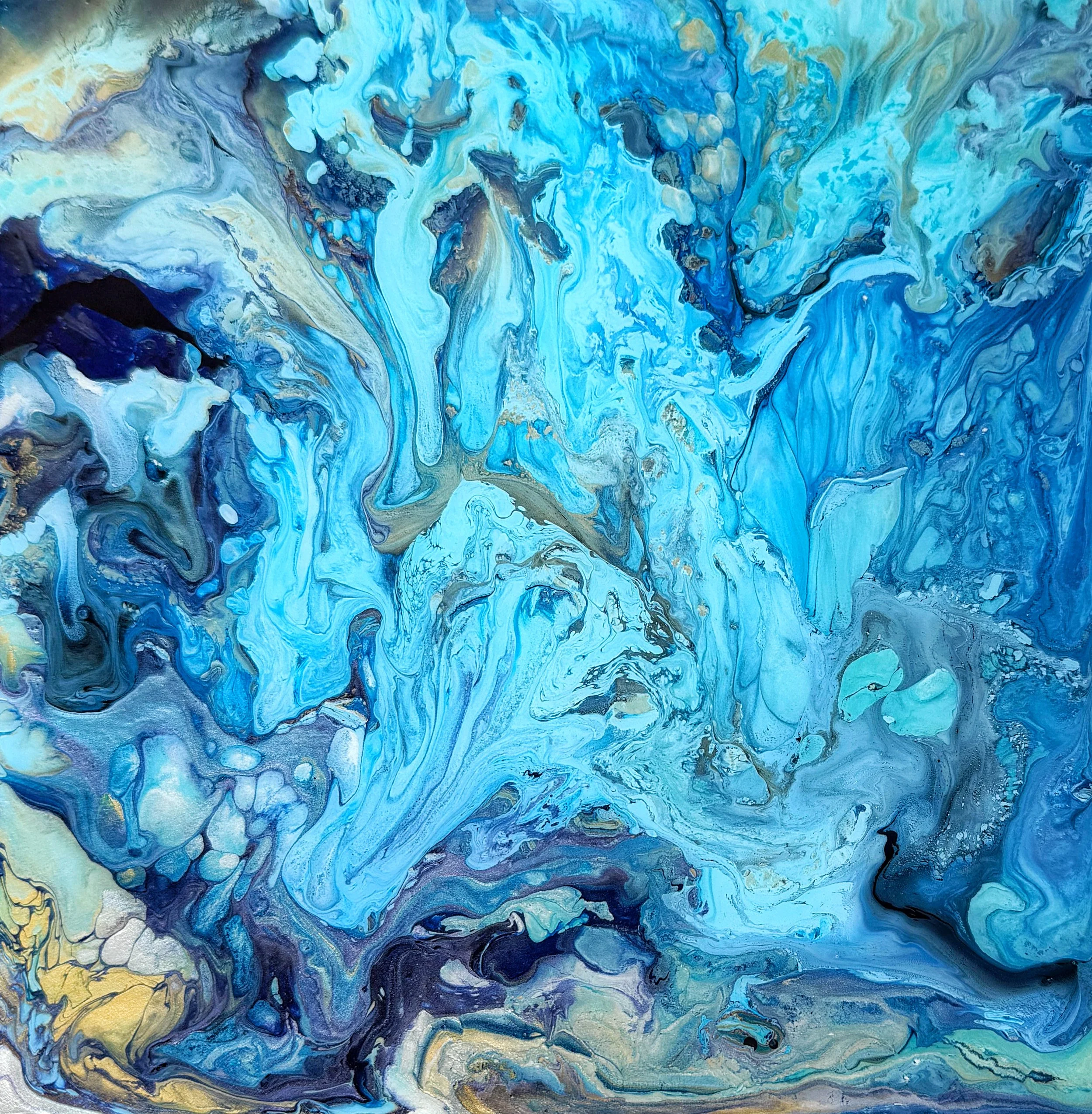 fluid acrylic on 1.5” deep cradled wood panel topped with high gloss epoxy resin