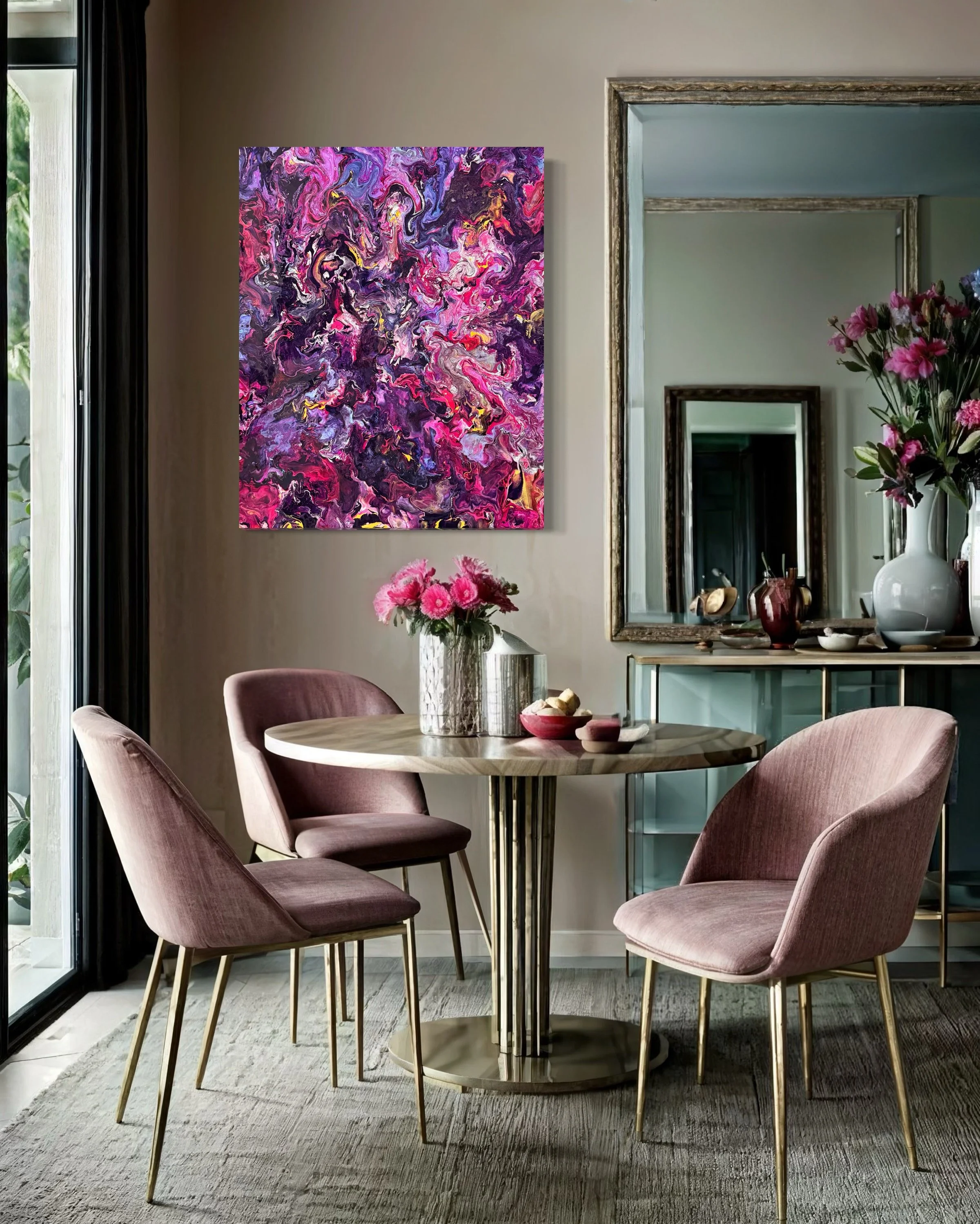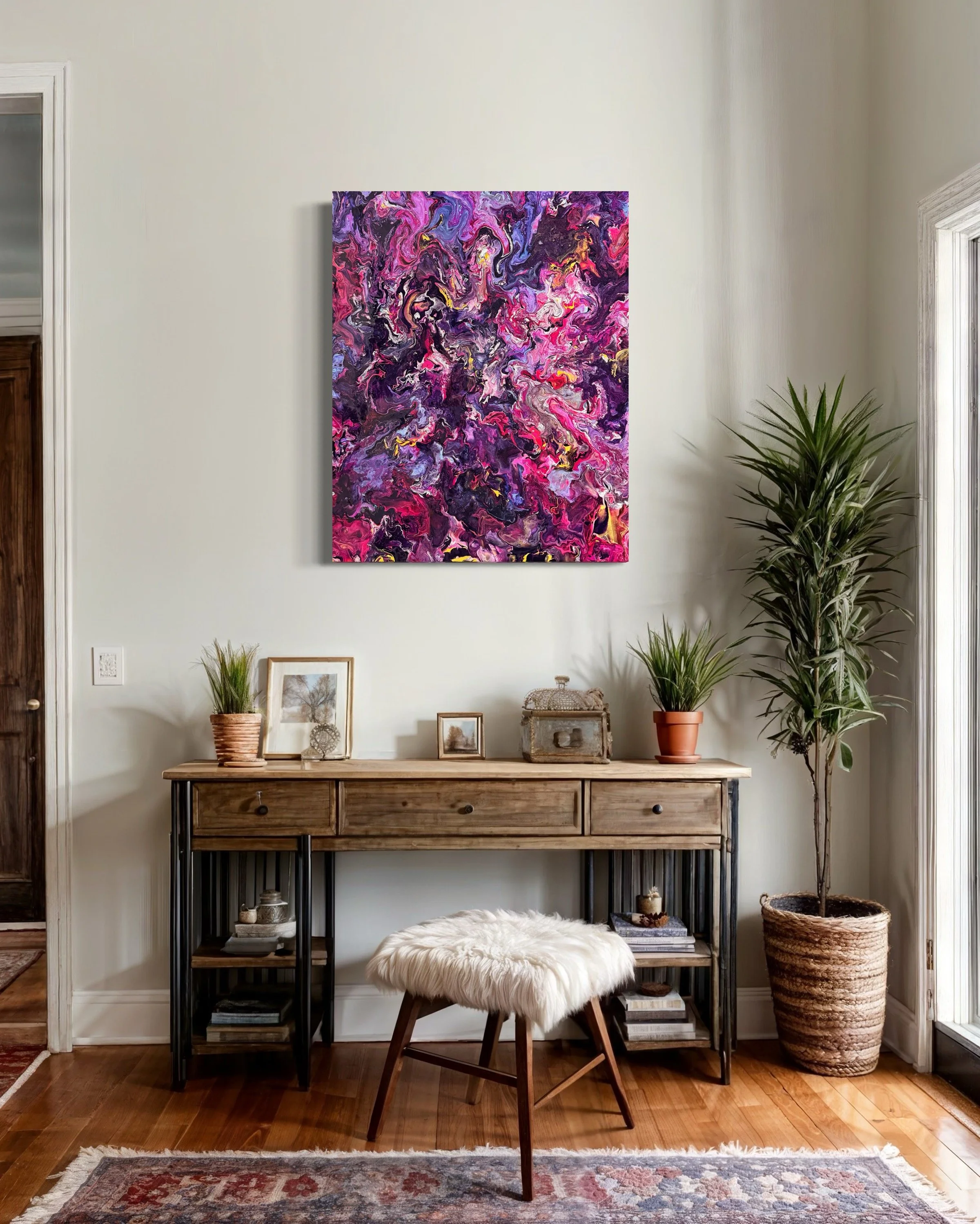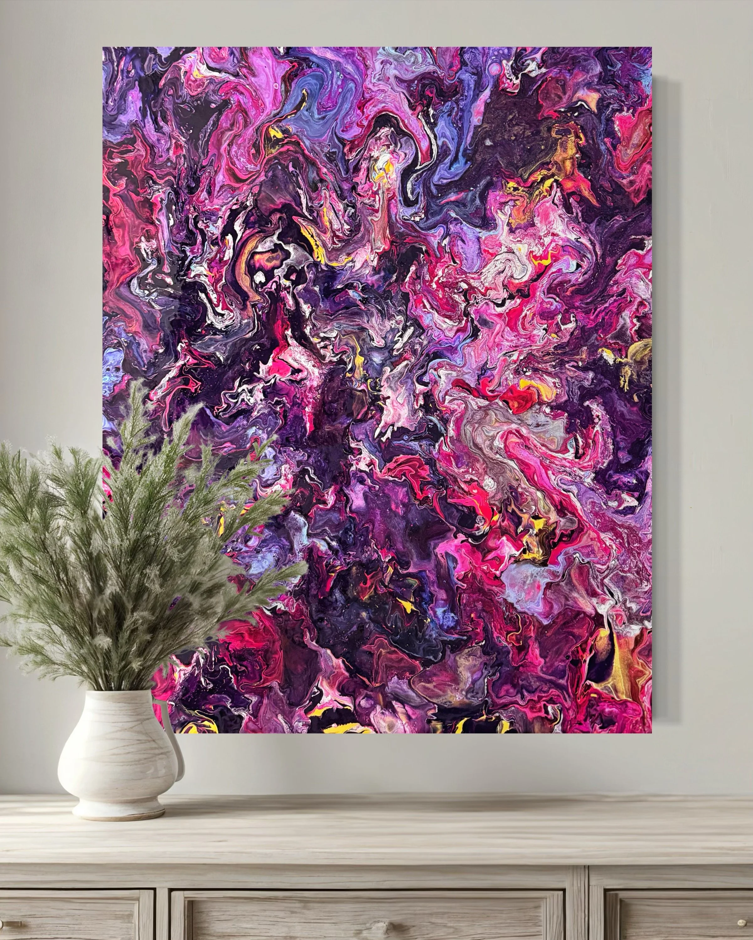fluid acrylic on 1.5” deep linen canvas topped with high gloss epoxy resin